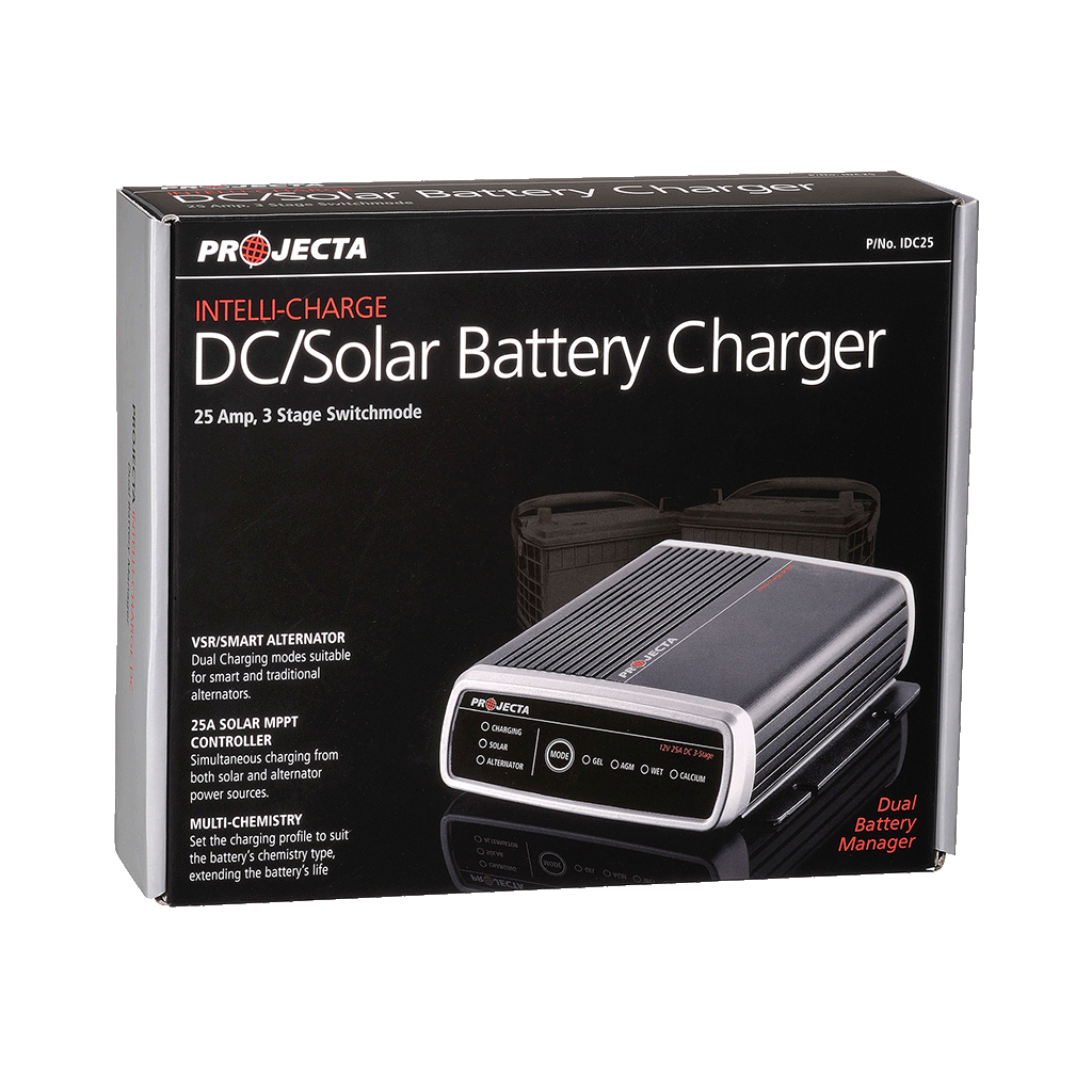 Projecta Intelli-Charge IDC25 is a dual battery management system ideal for 4WD and camper trailer applications. Intelli-Charge IDC25 is an advanced 3-stage charge simultaneously from both alternator and solar inputs, you'll always have a charged second battery with Projecta